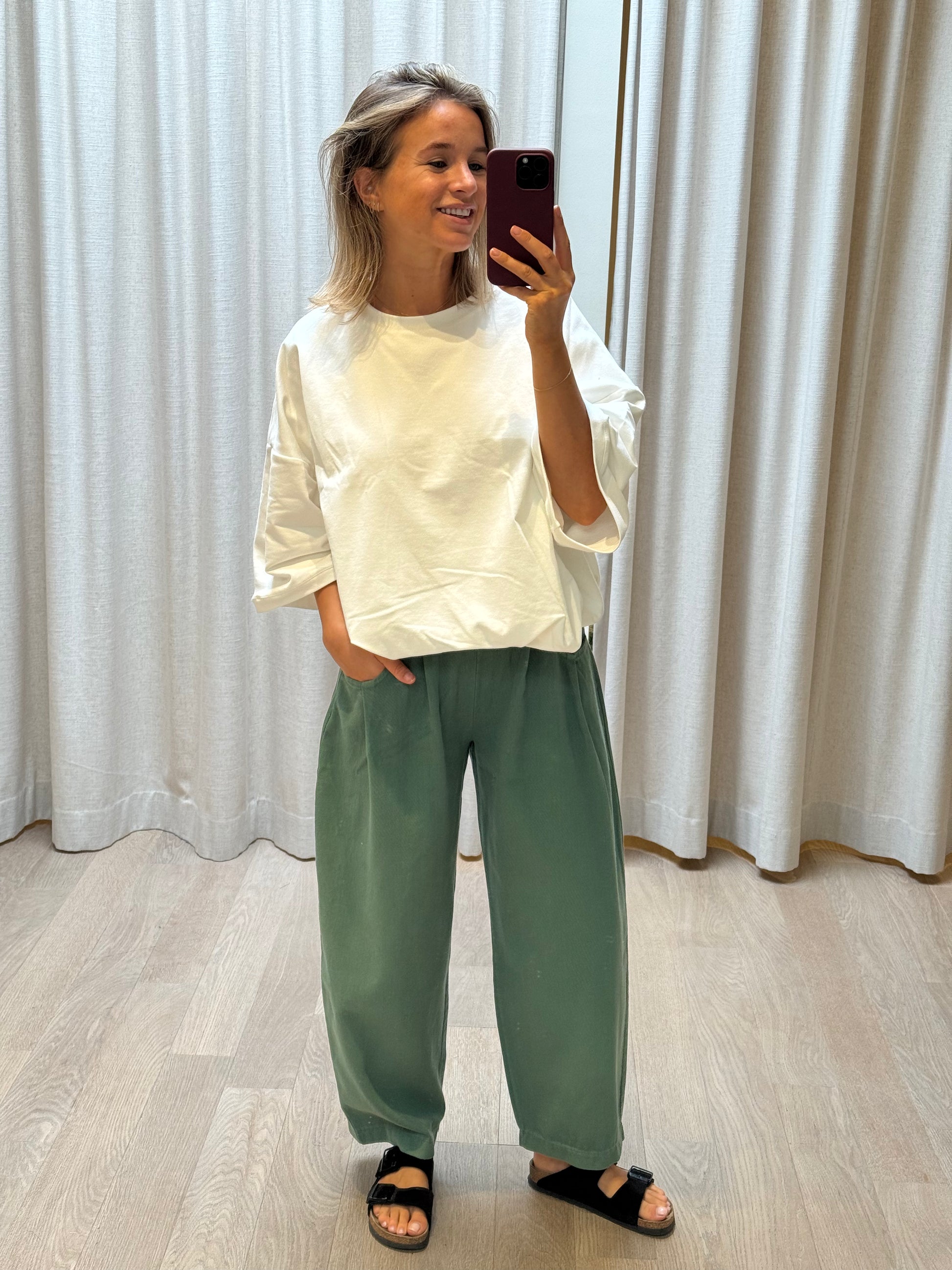 Eén maatje, er zit een elastiek onderaan. De ideale top om met alles te combineren!